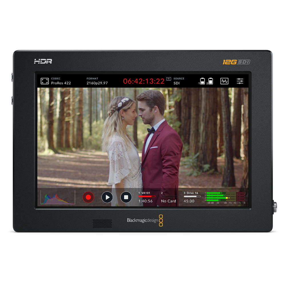 Blackmagic Video Assist 7″ 12G HDR adds professional monitoring and recording to any SDI or HDMI camera in all HD, Ultra HD, 2K and 4K DCI formats! The super bright 2500nit 7 inch HDR monitor supports 3D LUTs and features professional scopes along with powerful focus assist and exposure tools that help you accurately set focus, exposure and frame shots. Dual built in SD card recorders save files from any camera in 10‑bit 4:2:2 ProRes or DNx formats. You also get two mini XLR connections with 48V of phantom power and a noise floor of ‑128dBV for high quality, crystal clear audio recording. Plus, you can start editing immediately because you don’t have to convert the files!